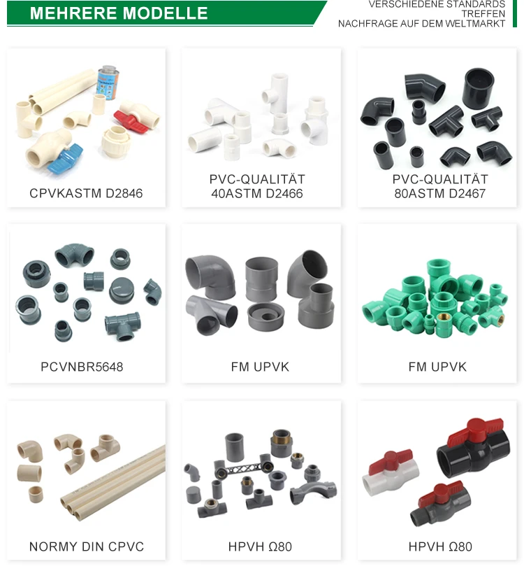 Die von uns bereitgestellten Standards: ASTM2846, DIN 8079/8080, ASTM F441/F441M SCH80, DIN, DIN, GB/T 18993 Series Standards, AS/NZS 1477, CSA B137.6, NSF/ANSI 14, TIS 17-2532/1131-2535 usw.