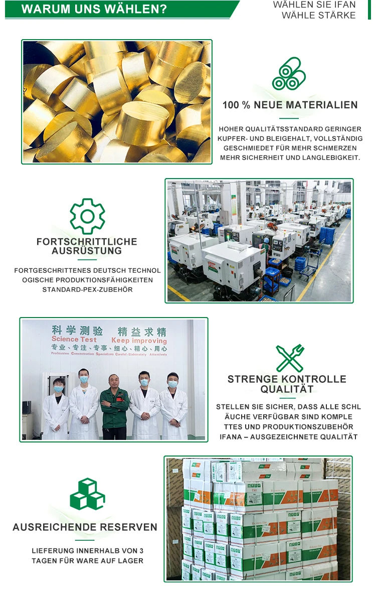 IFAN ist ein chinesischer Hersteller von Kunststoffrohren, -armaturen und -ventilen mit 30 Jahren Erfahrung. Wenn Sie an Kupferarmaturen, Kupferventilen, Kunststoffrohren und -armaturen von IFAN interessiert sind, kontaktieren Sie uns bitte. IFAN bietet Ihnen eine Vielzahl von Standardrohren, um Ihren spezifischen Anforderungen gerecht zu werden. Klicken Sie unten, um mehr über IFANs breites Angebot an erschwinglichen und kosteneffektiven Ventilprodukten und Produkten für Rohrleitungssysteme zu erfahren.