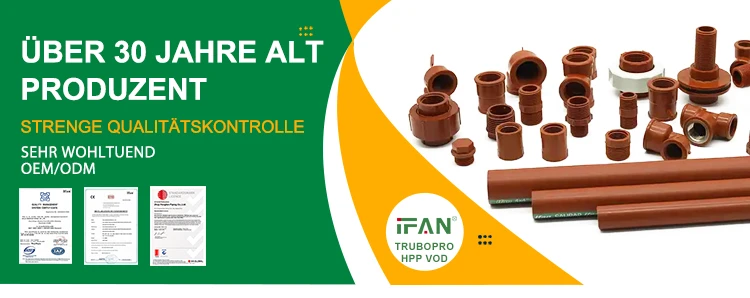IFAN ist ein Hersteller mit 30 Jahren Erfahrung, der auf die Produktion hochwertiger Kunststoffzubehörteile, Armaturen und Ventile spezialisiert ist. Unsere Produkte umfassen Kupferventile, PPR-Ventile und verschiedene Armaturen, um den unterschiedlichen Kundenanforderungen gerecht zu werden. Ganz gleich, welche Anforderungen Sie an Rohrleitungen oder Ventile haben: IFAN bietet eine breite Palette kostengünstiger Produkte zur Unterstützung Ihres Projekts. Nachfolgend finden Sie unsere Kontaktinformationen. Dies ist unsere WhatsApp: +86 152 1588 7738, E-Mail: [email protected]
